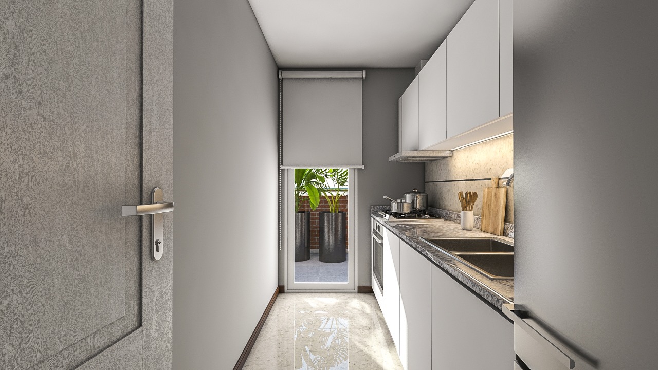 • Pisos y revestimientos: porcelanatos de primera calidad en cocina, baños, estar-comedor y balcones.